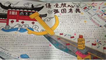 比赛通知一经发出,各班广泛动员,学生积极参与。通过查阅资料、设计构思、认真创作,每件作品都主题鲜明、图文并茂,富有知识性和趣味性。我们仿佛能看见同学们勾线时的细致,铺色时展露着自信的目光,书写文字时对党和国家的热爱。