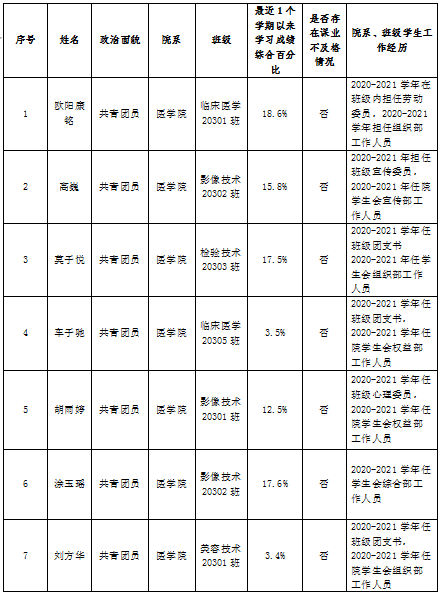 三医学院学生会组织工作人员名单