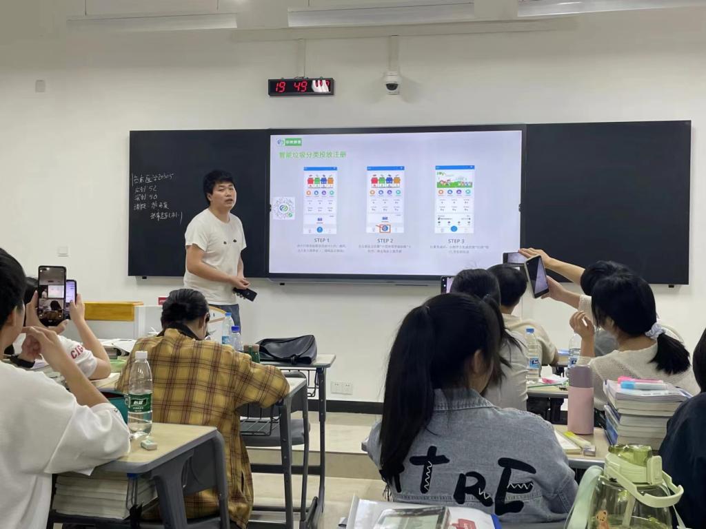 培训开始前,学工处处长谢海英进行动员讲话,她强调学校开展垃圾分类工作的必要性,学校即将全面启用智能垃圾分类箱,希望同学们认真学习,将培训内容转达至班级每位同学,在今后的校园生活中能认真践行垃圾分类。随后,后勤产业处李老师从如何进行垃圾分类和智能垃圾分类箱的使用方法开展培训。