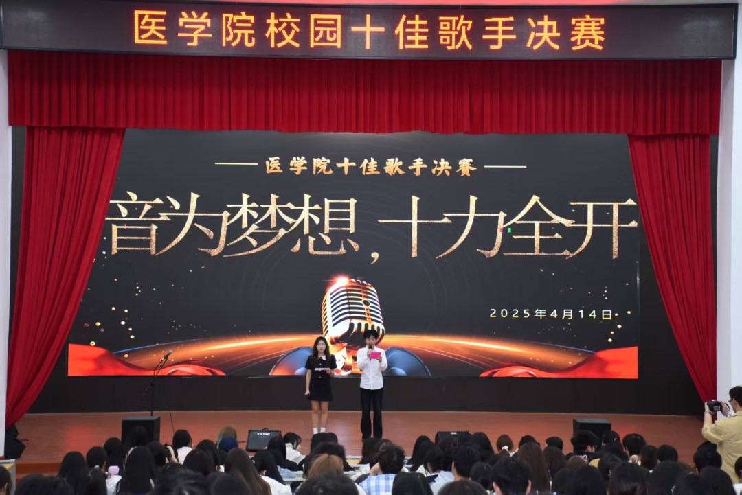 为丰富学生课余文化生活,展示艺术风采,4月14日,医学院在仁济楼小礼堂开展“医路声花”十佳歌手大赛。各班级共300余名学生共同观看本次比赛。