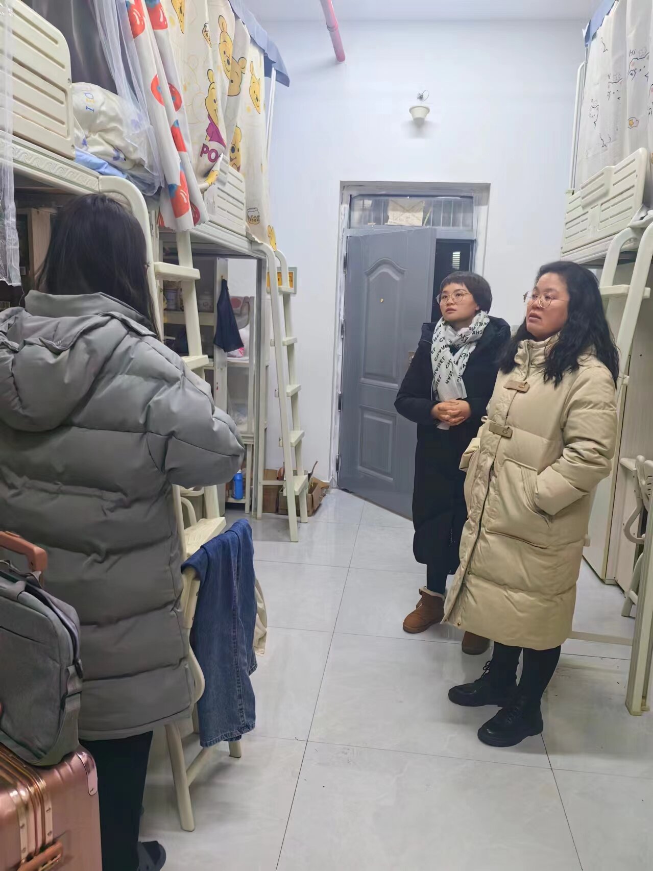 走访过程中,王晔、黄慧精详细询问了学生寒假在家情况,查看了学生宿舍安全情况,提醒同学们要安全用电,嘱咐同学们平时要多锻炼身体,提高身体素质,调整好生活作息,尽快从假期状态转为学习状态,并勉励同学们要珍惜美好的青春时光,扎实学好专业知识,努力提高综合素养,争做德智体美劳全面发展的新时代大学生。