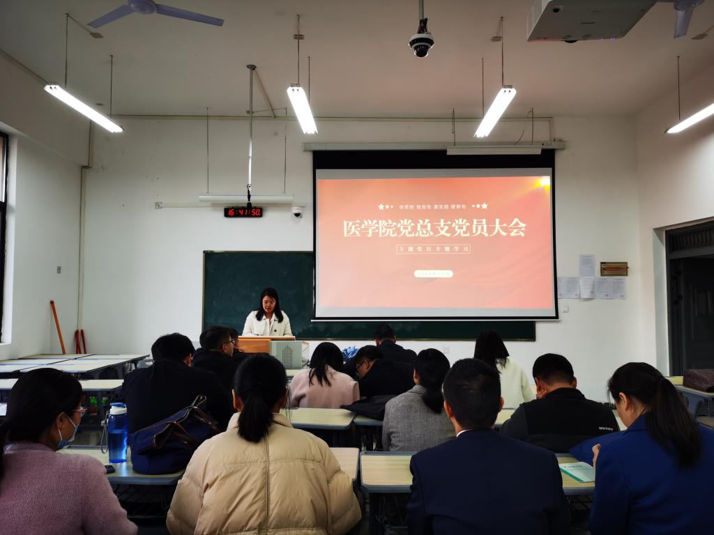 为深入学习贯彻党的二十大精神和习近平新时代中国特色社会主义思想,落实“三比三争”工作要求,进一步提升党员思想理论水平和党性修养,11月14日下午,医学院党总支在仁济楼E310开展专题学习主题党日活动。活动由党总支副书记黄慧精主持,全体党员参会。