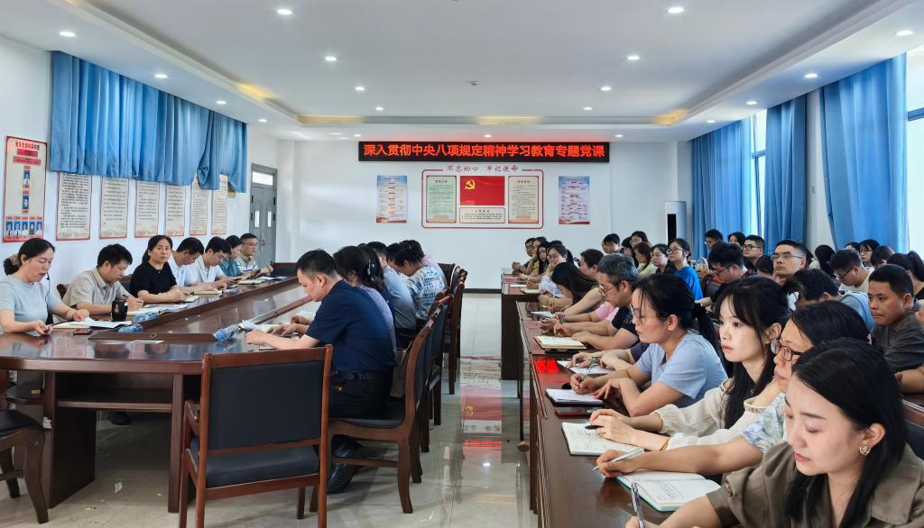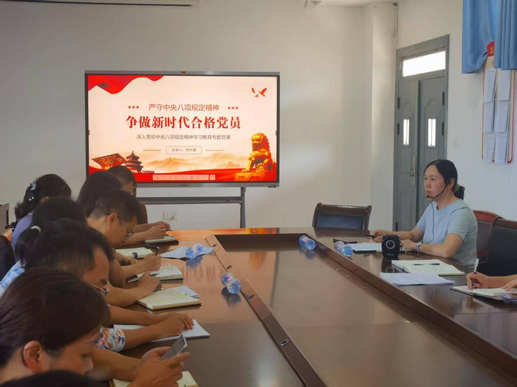 刘叶建以“严守中央八项规定精神 争做新时代合格党员”为主题,结合当前开展的学习教育和学校的实际工作,从“开展深入贯彻中央八项规定精神学习教育的重大意义”“全面理解中央八项规定精神的核心要义”“践行中央八项规定精神,争做新时代合格党员”三个方面展开,激励党员教师加强理论学习,强化理想信念,做一名思想坚定的党员;践行群众路线,密切联系群众,做一名牢记宗旨的党员;严格自我要求,从小事做起,做一名作风过硬的党员。